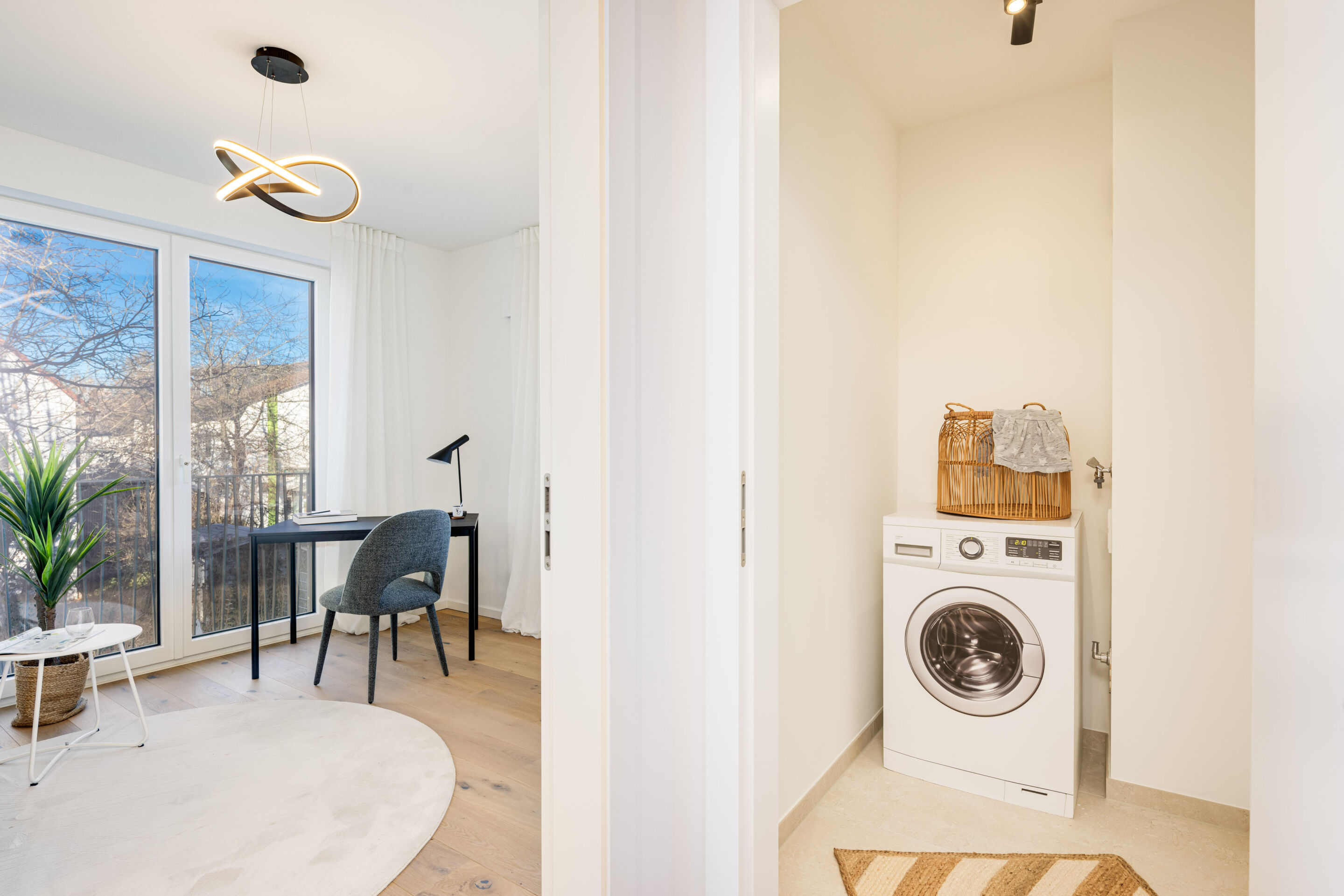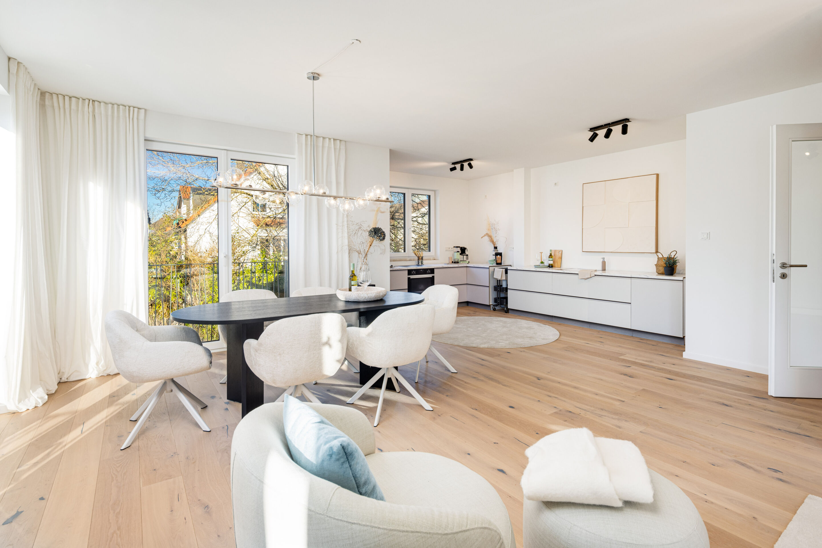 Even the Celts settled in Trudering, but the neighborhood has only belonged to Munich since 1932. The neighborhood was named after the farmer Truchtaro, who settled here as early as 500 AD. Today, Trudering, with its many single-family homes, duplexes, row houses and well-kept small apartment complexes, is one of the most popular and traditional residential areas in the city. Many green spaces, such as the nearby Ostpark, and a largely traffic-calmed environment make for a family-friendly and quiet residential atmosphere. The Michaeligarten, one of the most beautiful beer gardens in Munich, is about 5 minutes away by bike. The infrastructure can be described as optimal. Within walking distance to Groschenweg are stores for daily needs, pharmacies and doctors. Schools and kindergartens are also in the immediate vicinity. The district captivates by its proximity to the city as well as the favorable connection to the Munich surrounding countryside. The city center can be reached in about 15 minutes via the Trudering subway and suburban train station. The A9 and A99 motorways provide quick access to the airport.