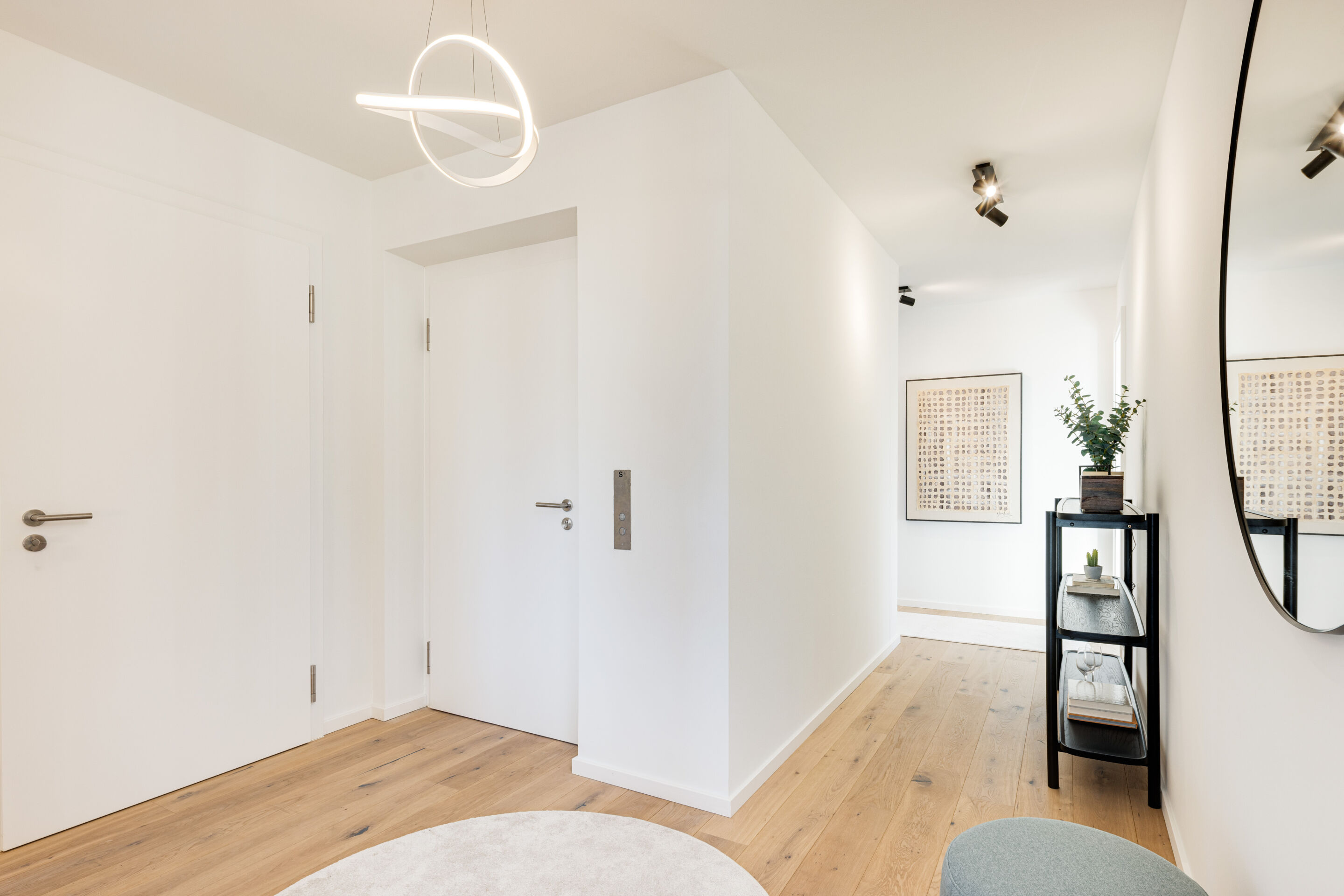All apartment types feature practical room layouts. For example, the three-room ground floor apartment in House 1 with its spacious garden offers plenty of room for families. Additional square footage is provided by private, walk-in basement rooms of living space quality, accessed directly via a staircase.