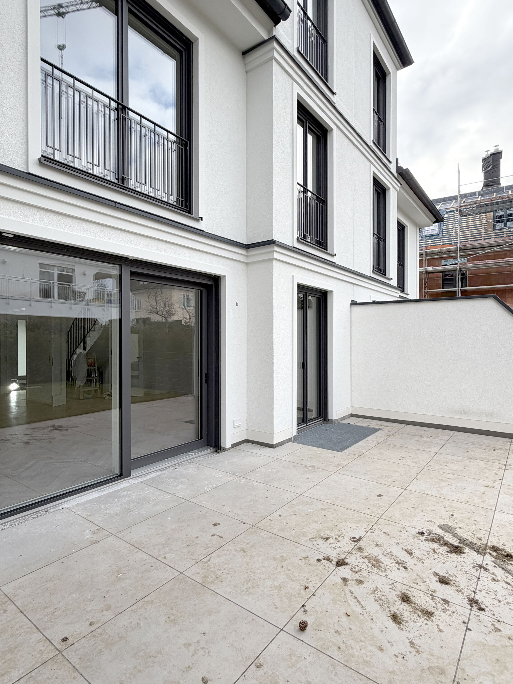 This new-build project in the charming Bogenhausen-Priel district was designed and realized with great dedication and attention to detail. The timelessly elegant façade lends the ensemble an unmistakable aura. Inviting front gardens, spacious terraces with idyllic gardens, numerous dormer windows and other tasteful accents create a harmonious overall picture. Thanks to a well thought-out floor plan with light-flooded rooms, large windows and the option of a fireplace connection, the two halves of the house meet even the highest living standards.